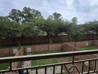 Residents enjoy access to exceptional communal amenities within this well-maintained complex. A large, inviting swimming pool and a charming thatched-roof communal building create an ideal recreational space, surrounded by lush landscaping and mature palm trees. Security is paramount, with a manned gatehouse, dual boom barriers, and 24-hour security ensuring peace of mind. Located in Mooikloof Ridge, Pretoria, this property offers a desirable suburban setting with a strong sense of community.