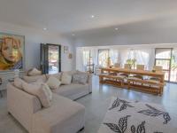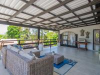 A self-contained one-bedroom flatlet with private patio provides extra accommodation for guests or family. Entertain effortlessly across four outdoor areas: covered balcony with garden and sea views, private patio, stylish braai area by the pool, and poolside bar with lounge and bathroom.
