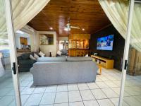 • Covered patio with built-in braai overlooking pool and garden