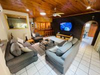 This modern Brackenhurst home offers the perfect blend of space, comfort, and style. It features three bedrooms with built in cupboards, two bathrooms (main ensuite), and a study or home office. The open plan layout includes an oak kitchen with granite tops, pantry, double oven, and gas hob flowing into the dining and lounge areas.