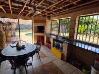 The house welcomes you with a entrance foyer opening up to a study room, Spacious living room with sliding doors opening up to a entertainment patio with its own build in braai, opening up to the formal spacious dining room.