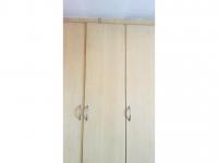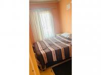 Accommodation includes three bedrooms, each with tiled flooring and large windows equipped with security bars and curtains, ensuring privacy and safety. A single bathroom serves the household. The property's exterior features a tiled roof and textured yellow walls, with security bars on windows and the main door, contributing to its secure profile. The presence of a garden offers potential for outdoor enjoyment and landscaping.