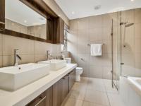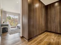 There are two well-sized bedrooms with wood laminate flooring and two modern full bathrooms. The main bedroom, also air-conditioned, enjoys magnificent views from large windows and includes a walk-through dressing area leading to a stylish en-suite bathroom with double vanities and underfloor heating.