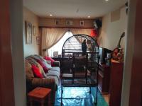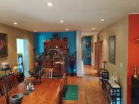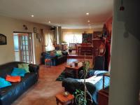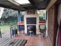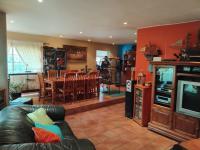 Additional highlights include a built-in pub, a braai area, and two entrances for easy access. Parking is ample with a three-car garage, a double carport, and extra space for visitors. Prepaid electricity is available, and the entire home is finished with tiled flooring.