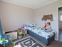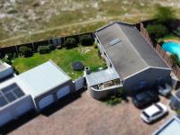 The spacious tiled lounge and dining room create a comfortable living space that flows effortlessly out onto a paved patio with a built-in braai area, ideal for entertaining and family gatherings.