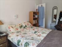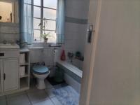 Adjacent to the bar is a well-appointed kitchen fitted with ample cupboards space, a convenient scullery, and a modern gas stove. The passage from the kitchen includes linen cupboards and a separate guest toilet for added convenience.