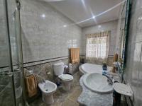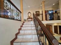 Step inside to discover an expansive interior designed for both grand entertaining and intimate family living. The residence boasts an impressive four bedrooms and four and a half bathrooms including a convenient guest toilet ensuring ultimate comfort and privacy. The heart of the home unfolds into an open plan concept seamlessly connecting three distinct lounges, a dedicated dining room and a gourmet kitchen. This culinary haven is appointed with extensive wooden cabinetry, gleaming granite countertops and a generous central island perfect for casual dining or sophisticated gatherings. Modern appliances including a built-in oven, microwave and extractor fan complement the space while durable tiled flooring extends throughout, creating a cohesive and elegant flow. Architectural pillars add a touch of classical grandeur and a dedicated study provides a tranqui