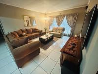 This inviting four bedroom and two bathroom family home is situated in the desirable suburban area of Randhart, Alberton. The property boasts excellent kerb appeal with a secure automated gate, electric fencing, and a paved driveway leading to three garages and two additional open parking spaces. The well-maintained front lawn and established shade tree enhance the welcoming entrance.