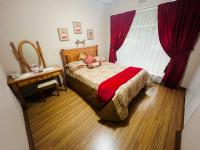 Inside, the residence offers a comfortable layout featuring a lounge, a dedicated dining room, and a family and TV room, providing ample space for relaxation and entertainment. An open-plan design enhances the flow between living areas. The home includes a study, ideal for remote work or quiet contemplation, and is wheelchair-friendly.