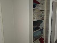 The heart of the home is a bright and functional kitchen, equipped with white cabinetry, stainless steel appliances, and a convenient pantry for extensive storage. A movable kitchen island adds flexibility to the space. The four well-proportioned bedrooms include one with an en-suite bathroom, while a second modern bathroom features a freestanding bathtub and stylish wooden vanity. Built-in cupboards are present in multiple rooms, ensuring practical storage solutions throughout the home.
