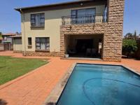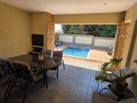 This beautiful home offers 4 Bedrooms with built-in cupboards, 2 Bathrooms that is fully tiled and a guest toilet. Open plan Dining room and Family room leading out to entertainment area with built-in braai overlooking green garden, swimming pool with cover, making it perfect for relaxing and entertaining guests. Kitchen with granite counter tops, breakfast nook that is perfect for meals with family and [hidden] Garages and 2 open Parking's. Staff quarters. Lux Power 5kw Inverter and 5kw Lithium battery included. Property also has solar geyser.