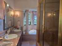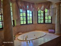As you enter the double front door, you are greeted by a granite staircase, mirrored walls on the one side and a painted mural on the other. Up or down? The top level offers 2 bedrooms, a family bathroom, lounge with access to a balcony. The third bedroom, the master suite, also on this level, was made with luxurious living in mind, complete with fireplace, access to the balcony, separate dress room, and a bathroom designed for long lazy baths in the spa bath, or enjoying the steam room in the double shower. It also includes a double basin and separate [hidden];