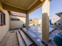 An outdoor covered patio area provides a perfect spot for relaxation or entertaining. The property also includes a dedicated laundry room with tiled floors and walls, offering practical utility space and direct outdoor access. Security is enhanced by a perimeter fence and security gates on windows, ensuring peace of mind. The property is pet-friendly and includes outside toilets for added convenience.
