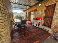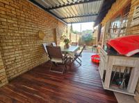 The home welcomes you into a spacious open-plan lounge and dining area, neatly tiled and flowing through wooden sliding doors onto a under cover deck patio – an ideal spot for family gatherings and braais. The patio overlooks a well-sized, pet-friendly garden. Being a corner unit, the garden is larger than most, offering extra outdoor space.