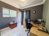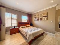 The spacious open-plan layout seamlessly connects the lounge, dining area, and contemporary kitchen, creating an inviting space ideal for both everyday living and entertaining. The kitchen features granite countertops, ample built-in cupboards, a glass hob, under-counter oven, and a separate scullery for added convenience.