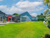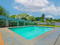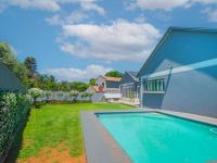 The neat garden is a sanctuary of peace, featuring a sparkling swimming pool, perfect for enjoying sunny days with family and friends.