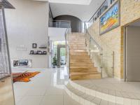 The designer kitchen is a true showpiece, boasting a central island, double fridge space, integrated appliances, and a separate scullery and laundry. A private formal dining room, accessible from both the kitchen and reception, adds a touch of elegance to every occasion.