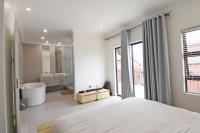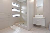 Upstairs - 3 bedrooms and 2 full bathrooms (bath and shower). En-suite bathroom with a modern shower, toilet and bath. Main & 2nd bedroom doors open up to a large balcony. 2nd bathroom also has a modern bath and shower. Linen cupboard in the passage