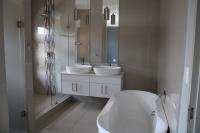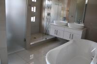 Upstairs - 3 bedrooms and 2 full bathrooms (bath and shower). En-suite bathroom with a modern shower, toilet and bath. Main & 2nd bedroom doors open up to a large balcony. 2nd bathroom also has a modern bath and shower. Linen cupboard in the passage