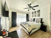 This residence comprises four well sized bedrooms and two bathrooms, including a private onsuite for added convenience and luxury. Practical amenities such as a laundry room and dedicated storage space contribute to the home's functionality. Outside the property truly shines with a refreshing swimming pool and a relaxing jacuzzi perfect for unwinding. The established garden complete with paving and two one bedroom, kitchen and lounge charming Wendy houses for extra income offers a delightful outdoor environment for pets and children alike.
