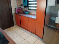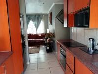 Step inside to an inviting open-plan layout that seamlessly connects the kitchen and living area, creating a spacious and functional environment. The kitchen is equipped with modern appliances, including a hob, oven, and microwave, alongside ample storage provided by numerous cabinets. Tiled flooring extends throughout the living spaces, ensuring easy maintenance and a cohesive aesthetic. The lounge area benefits from good natural light, creating a bright and welcoming atmosphere.