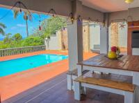 A separate flatlet adds flexibility, complete with a small kitchen, bathroom, and built-in bar, making it perfect for guests or extra income. In front of the flatlet sits a pool that ties the property together beautifully.