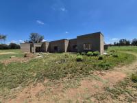 The property presents multiple single-story structures on an impressive 40471 sqm erf. While currently unfinished with unpainted plastered walls and corrugated iron roofs, the modern architectural style of the main dwelling is evident. This allows for a personalised completion of its exterior aesthetic, promising significant kerb appeal once finished.