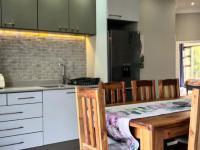 Entertainment and relaxation are effortless with a braai area, a bar area with sliding doors opening onto the sparkling pool and a lush, manicured garden — perfect for gatherings, summer days, or quiet family moments.