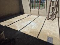 Inside, the main residence boasts a generous layout with four lounges and two dining rooms, providing ample space for family living and entertaining. The kitchen is partially fitted with extensive white cabinetry, black countertops, and essential appliances including a built-in oven, microwave, and two large refrigerators. However, the interiors are largely unfinished, featuring exposed ceiling joists, unplastered walls, and concrete floors, offering a unique opportunity to design and finish to your exact specifications. The home is designed with four bedrooms and three bathrooms, two of which are en-suite, ensuring comfort and privacy. These spaces, like the rest of the interior, await the final touches to transform them into personalised sanctuaries.