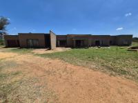 The property presents multiple single-story structures on an impressive 40471 sqm erf. While currently unfinished with unpainted plastered walls and corrugated iron roofs, the modern architectural style of the main dwelling is evident. This allows for a personalised completion of its exterior aesthetic, promising significant kerb appeal once finished.