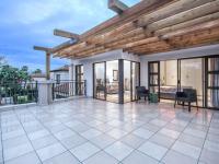 The property's exterior is designed for unparalleled outdoor living and entertaining. It features a private swimming pool, an expansive brick patio, and multiple pergolas, creating ideal settings for al fresco dining and leisure. Seamless indoor-outdoor flow is achieved through numerous large glass doors, connecting the interior spaces to the lush garden and paved areas. Several balconies offer elevated vantage points and additional outdoor retreats. A double garage and two additional parking spaces provide generous accommodation for vehicles.