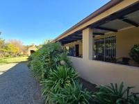 Step outside to a magnificent outdoor oasis. The property boasts a sparkling swimming pool set within a lush, well-maintained garden adorned with mature palm trees, creating an inviting entertainment area. A large gravel courtyard with a central garden island and stone bench offers additional space for gatherings. Practical features include three garages, a lapa for outdoor enjoyment, and a separate flatlet with domestic rooms, stables adding versatility. The property is pet-friendly and benefits from a borehole and water tanks, enhancing self-sufficiency.