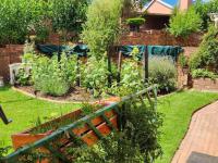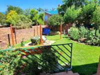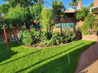 Beyond the interiors, the property features a private paved outdoor seating area, ideal for relaxation or entertaining, surrounded by established garden beds and a neat green lawn. Two dedicated parking bays are available. As part of a security complex and estate, residents benefit from enhanced safety measures, including security gates and burglar bars, ensuring a secure suburban lifestyle.