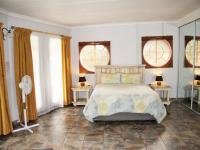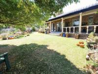 In total the house includes five well-proportioned bedrooms and five bathrooms, three en-suite, ensuring privacy and convenience. Outdoors, the property shines with a spacious, established garden and an expansive covered veranda, perfect for alfresco dining. Practical amenities include three garages, five additional parking spaces, paving, and a borehole (needs attention) for water resilience.