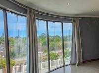 Large tinted windows throughout the home allow natural light in while maintaining privacy and comfort. The front patio captures beautiful sea views, while the thatched lapa at the back is ideal for family gatherings or quiet evenings outdoors.
