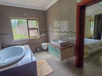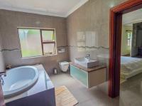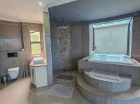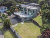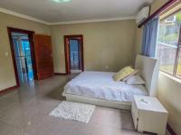 The kitchen includes two eye-level ovens, a laundry area, and a scullery, making it both functional and well-equipped for everyday living. Each bedroom has an air conditioner, keeping the home cool through warm coastal days. The main bedroom offers a full ensuite bathroom with a jacuzzi, providing a private retreat.
