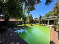 Externally, the property features a private garden, a refreshing swimming pool, and a patio, ideal for outdoor leisure. A spacious paved driveway accommodates four parking spaces, complemented by mature trees. For enhanced security, the residence is equipped with burglar bars and security gates. Modern infrastructure includes fibre connectivity and a battery inverter, ensuring contemporary convenience. A valuable flatlet with one bedroom with a full en-suite bathroom and lounge area further augments the property's versatility.