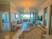 Experience luxury coastal living within an exclusive Estate in Shelly Beach. This exceptional home combines modern design, security, and natural beauty in one of the South Coast’s most sought-after estates. The home makes a strong first impression with its contemporary exterior, manicured gardens, and wide paved driveway leading to a decorative gate and elegant, multi-level entrance. The frosted-glass front door sets the tone for the refined interior that follows, with distant ocean views enhancing the sense of space and tranquillity.