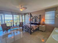 Outdoor spaces are designed for enjoyment and relaxation. The covered entertainment area opens to a private plunge pool with sweeping views of the ocean, river, and lush green surrounds. This property invites you to dine, unwind, and take in the peaceful surroundings. Security and sustainability are key features. The estate provides 24-hour security, controlled access, CCTV, and a fully walled perimeter. The home is equipped with fibre internet, solar panels, and water tanks for efficient, self-sufficient living. A domestic room adds further convenience. The estate is known for its natural beauty, catch and release dams, and abundant birdlife. The home offers an unmatched blend of luxury, peace, and outdoor living in the heart of Shelly Beach.