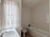 The functional kitchen is equipped with ample white cabinetry, contrasting black countertops, and an integrated stove, catering to culinary requirements. This residence comprises two well-proportioned bedrooms, providing comfortable accommodation. Complementing these are two bathrooms, one of which is the main en-suite, offering convenience and privacy. The design prioritises practicality and ease of maintenance.