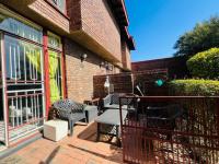Discover modern living in this stylish 96 sqm unit, ideally situated within a secure complex in The Hill, Johannesburg. The residence features an inviting open-plan living area, enhanced by a distinctive exposed brick accent wall and contemporary beamed ceilings that add character and a sense of spaciousness. The functional kitchen boasts modern light wood-grain cabinetry, sleek dark countertops, a white subway tile backsplash, and an integrated induction cooktop, complemented by a double sink and space for an integrated washing machine, ensuring efficiency and style.