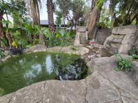 The home features an open-plan design, enhancing the flow between living areas. It boasts a well-appointed kitchen, a dedicated dining room, and two spacious lounges, providing ample space for relaxation and entertaining. Additionally, a separate family TV room offers a cozy retreat for casual gatherings. Sliding doors seamlessly connect the interior to the outdoor amenities.