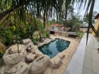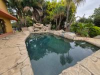 Step outside to discover a private garden, perfect for outdoor activities and pets, which are allowed. The property includes a refreshing swimming pool, ideal for warm South African days, complemented by a built-in braai for effortless entertaining. Paved areas ensure neatness and easy maintenance, while six dedicated parking spaces cater to multiple vehicles. A Wendy house provides additional storage or utility space. The presence of a flatlet adds significant value, offering potential for extended family living or rental income.