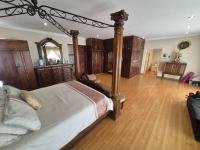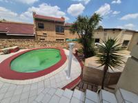 Outdoor living is a highlight, with a well-maintained garden providing a serene backdrop for leisure. Enjoy sunny South African days by the inviting swimming pool, or entertain guests under the charming lapa. Practical amenities include three garages and a total of six parking spaces, accommodating multiple vehicles with ease. The property is pet-friendly, allowing your furry companions to enjoy the expansive garden.
