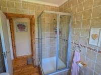 The upper level is where everyday living unfolds. An enclosed patio leads into an open-plan kitchen, dining, and lounge area with wooden floors that add warmth and texture. The kitchen is fitted with a gas hob, under-counter oven, and extractor fan, creating a functional space that blends comfort with practicality. Three bedrooms are located upstairs, including a main bedroom with an ensuite bathroom. The second bathroom is a full family bathroom with both bath and shower.
