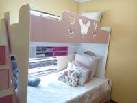 Step inside this inviting 152 sqm residence to discover a bright, open-plan living and dining area, bathed in natural light from large sliding doors. The space features durable tiled flooring and neutral walls, providing a versatile canvas for personal style. The functional kitchen boasts wood-grain cabinetry, ample granite-style countertop space, a tiled backsplash, and includes a built-in electric hob, oven, and extractor fan. A convenient breakfast bar offers additional seating, while the layout ensures seamless flow for entertaining.