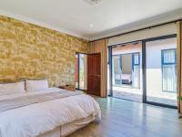 Nestled within the prestigious Pecanwood Estate in Hartbeespoort, this exceptional 5-bedroom, 5-bathroom residence offers an unparalleled lifestyle with direct golf course frontage. The interior boasts an inviting open-plan design, seamlessly connecting the living, dining, and modern kitchen areas. The kitchen features sleek white cabinetry, dark granite countertops, and a central island, perfect for culinary enthusiasts. Adjacent, a dedicated built-in bar with an ice maker and a cozy wood-burning stove create ideal spaces for entertaining or quiet relaxation. Large sliding doors enhance the indoor-outdoor flow, inviting natural light and picturesque views.