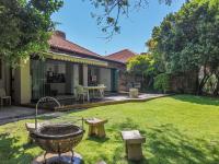Step outside to discover a magnificent outdoor oasis. A spacious wooden deck hosts an integrated plunge pool and a dedicated outdoor dining area, all set against the backdrop of the lush golf course. The expansive garden, complete with an outdoor braai/fire pit area and rustic seating, provides ample space for leisure and enjoyment. With two garages and additional parking, this home caters to all your needs.