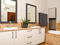 Each of the five spacious bedrooms is complemented by its own bathroom, with four being en-suite, ensuring comfort and privacy for all residents and guests. The property also includes staff quarters and a laundry room, adding to its practical appeal. Thoughtful features such as air conditioning, fibre connectivity, and an irrigation system contribute to a convenient and modern living experience.