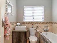 The home features three bedrooms and two bathrooms. Main bedroom fitted with air conditioning and ensuite bathroom. Modern open plan kitchen with plenty of cupboard space, flowing effortlessly into the bright and spacious living area and covered patio with built-in braai and lovely estate views.